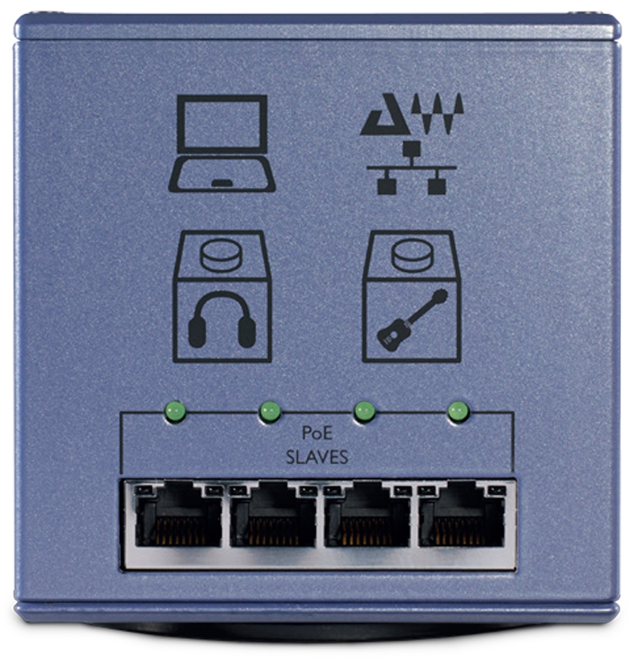 - It features one upstream (non-PoE) port, and four downstream PoE ports, which allows connection to four further DiGiGrid devices. [S] is also Dante compatible