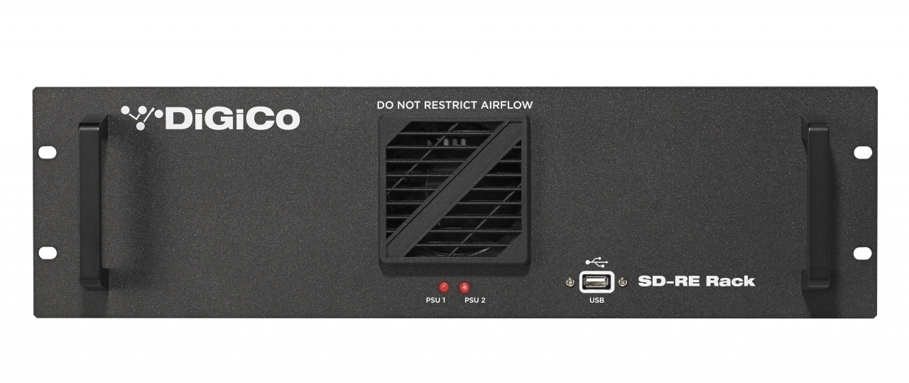 The SD-RE is a redundant engine for a DiGiCo SD10 console. It can connect to a 12-fader remote worksurface and a screen, keyboard and mouse.